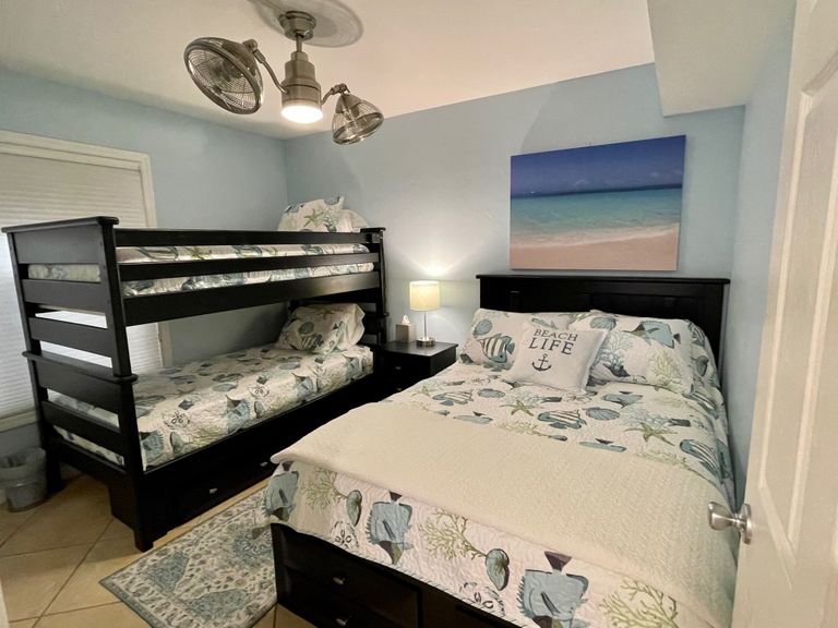 Second bedroom with full bed and twin bunkbeds (6 built in drawers)