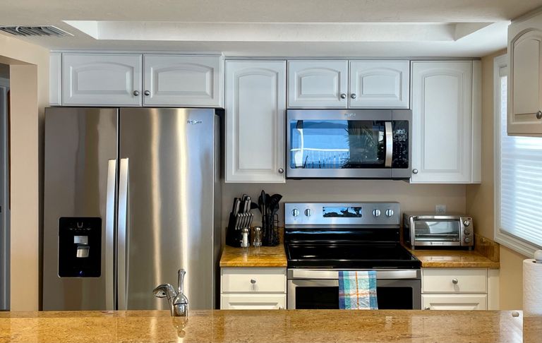 Kitchen refrigerator, microwave, stove, oven and toaster